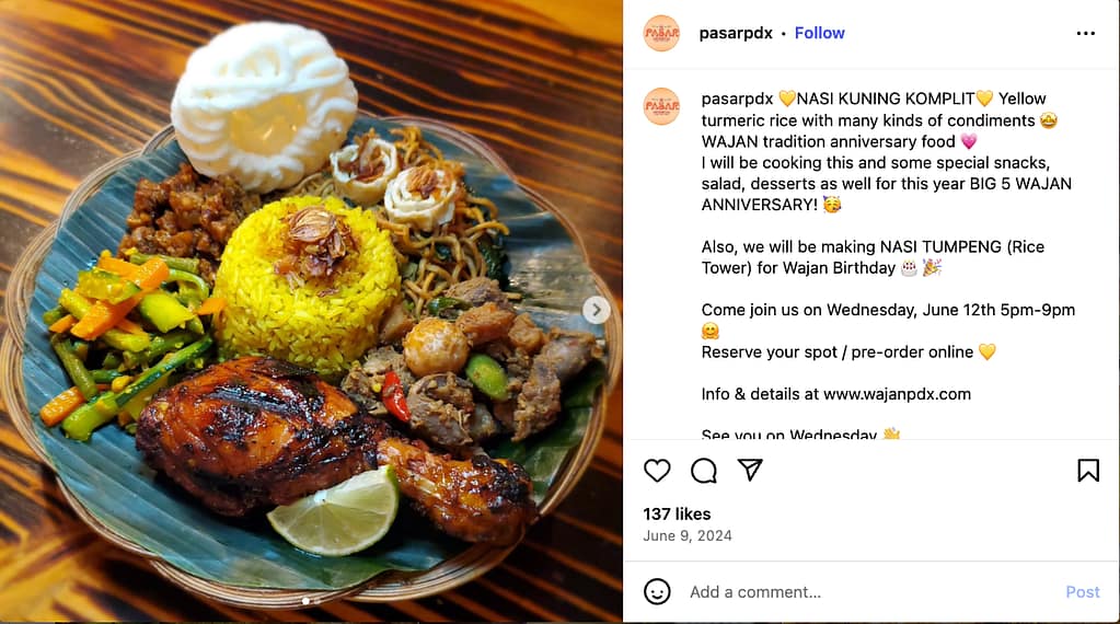 I’m excited for my kids to experience Indonesia’s snack culture—without jet lag. Sharing plates, playful sweets, cozy market visuals, and food that balances novelty with comfort—it’s exactly the kind of family outing that feels worth the investment to me, and I can’t wait to visit Pasar. NE Alberta St.