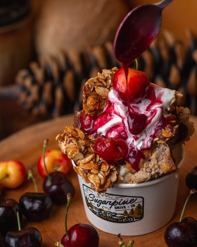 Each one is dog-friendly, teen-approved, and worth the stop — whether you’re heading home sweaty from Eagle Creek or just made the drive to Troutdale for Sugarpine’s seasonal Cherries Jubilee Sundae.