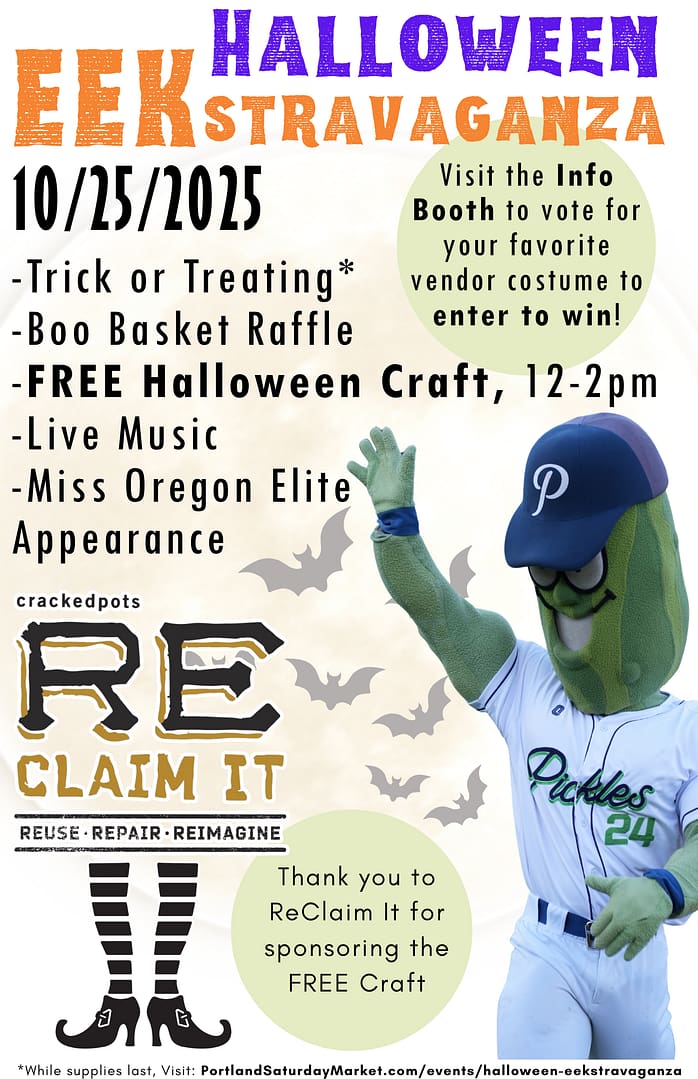 Portland Saturday Market 2 SW Naito Parkway, Portland, OregonJoin Portland Saturday Market, the Portland Pickles, and ReClaim It for an unforgettable creative kickoff to Halloweek! ReClaim It will be sponsoring our FREE Crafternoon… bring the whole family down […]