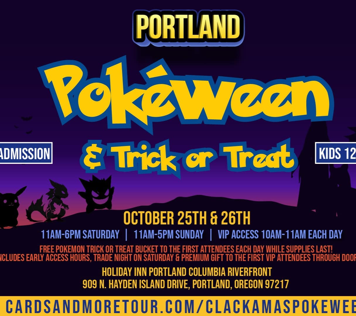 Holiday Inn Portland Columbia Riverfront 909 N. Hayden Island Drive, Portland, OregonPokéween & trick or treat is coming to the Portland area! October 25th & 26th! FREE POKÉMON TRICK OR TREAT BUCKET EACH DAY WHILE SUPPLIES LAST! $5 Adult Admission! Kids […]