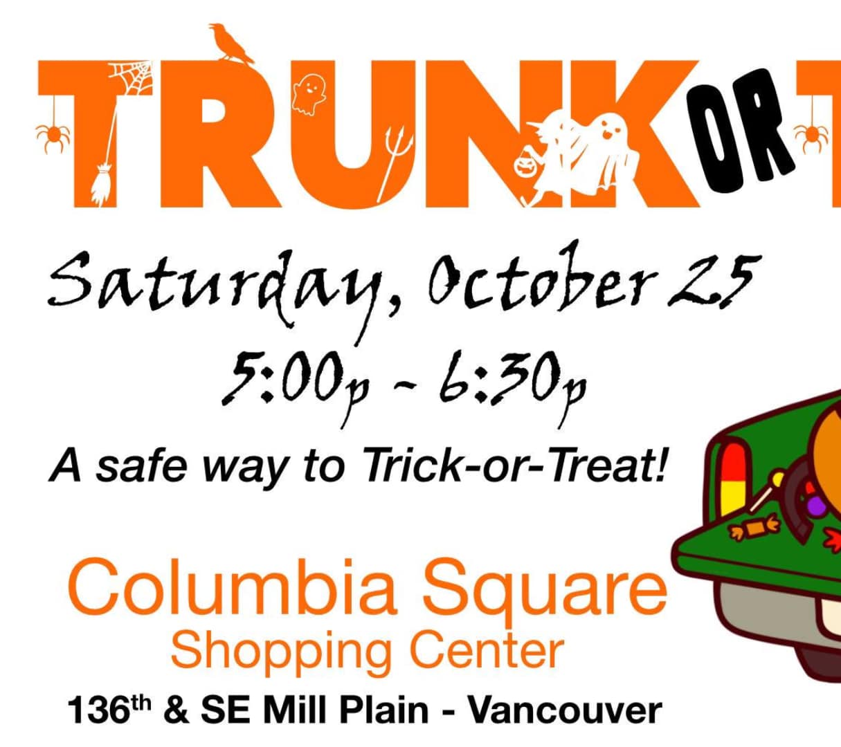 Vancouver MallSunday, October 26 | 4PM–7PM | Vancouver Mall Upper Lot (JCPenney’s & Movie Theater) Vancouver Mall and Orchards Cars & Coffee invite you to the 4th Annual Trunk-or-Treat! This year’s […]