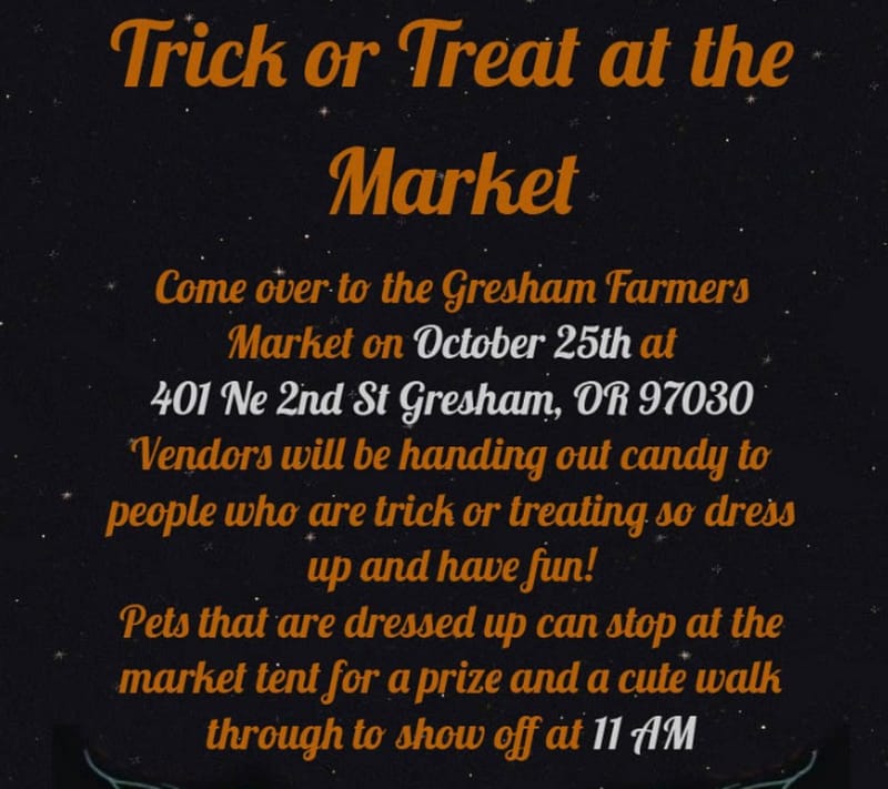 Come out and celebrate the last day of the season with us on October 25th. We will have trick or treat for the little ones. We encourage pets to be dressed up in costumes, stop at the market booth for a prize and if enough are in the market at 11am we will have them parade through the market.