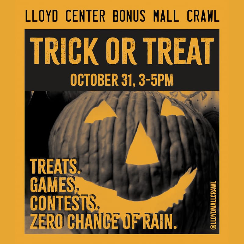 Whatever your age, start your trick-or-treating early at Lloyd Center. It’s warm and dry inside! Costumes encouraged but not required!